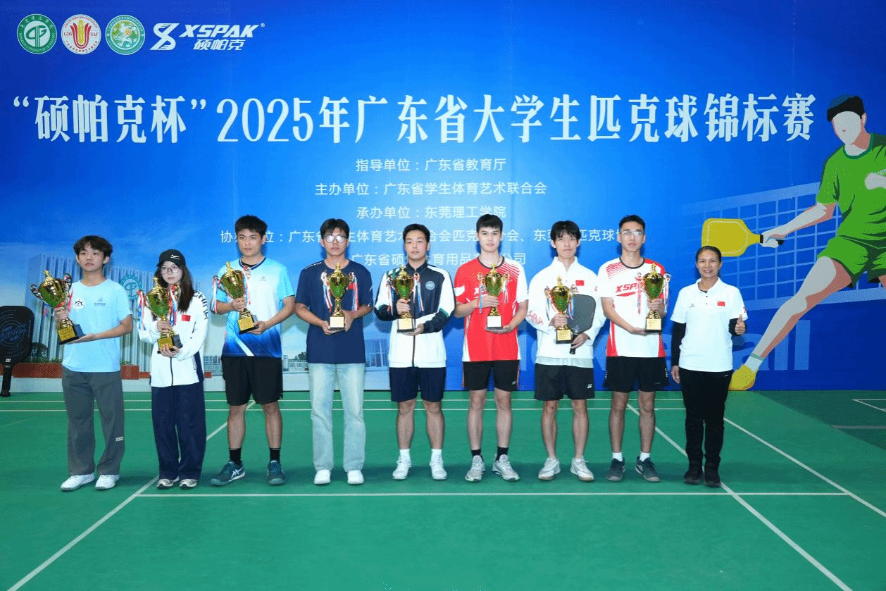 11月21-23日,“硕帕克杯”2025年广东省大学生匹克球锦标赛于在我校举办。此项赛事由广东省教育厅指导,广东省学生体育艺术联合会主办,我校承办,广东省学生体育艺术联合会匹克球分会、东莞市匹克球协会协办,广东省硕悦体育用品有限公司冠名赞助此活动。本届比赛吸引了全省54所高校796名运动员、教练员参赛,在甲组(非体育组)、乙组(体育组)和丙组(专科组)三个组别中,展开男子单打、女子单打、男子双打、女子双打和混...