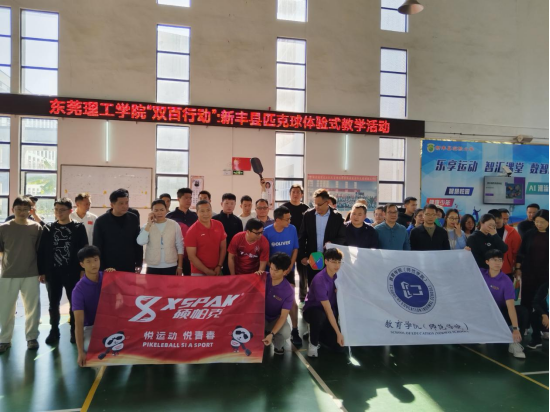 为进一步推动学校“双百行动”走深走实,普及与发展体育运动,促进全民健身,3月21日下午,我院院长助理、体育系主任苏敷志老师带领匹克球全国冠军教学团队走进韶关市新丰县,开展匹克球体验式教学活动,来自新丰县教育局、新丰县文广旅体局的40名学员参加了培训。