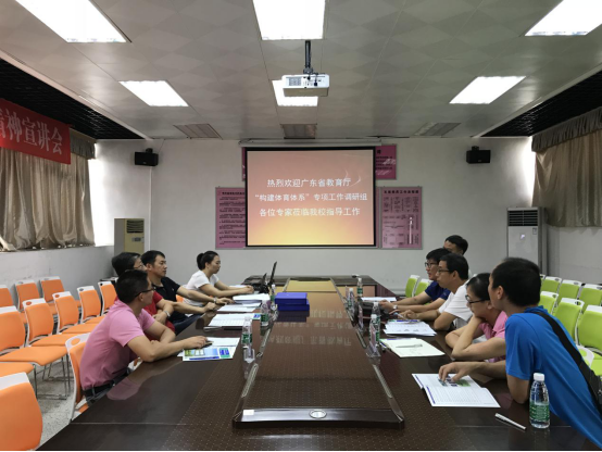 省调研组专家首先与教育学院(师范学院)体育系各负责人开展了深入座谈。陈进副院长先介绍了我校体育教学的概况,接着,体育系主任唐胜英、体育系副主任李逸涛、公共体育教学部主任高峰,以及体育场馆中心代表梁凡,他们针对我校体育专业师资队伍结构、体育硬件设施建设、体育课程与教学管理、社会体育专业建设、体育运动队建设、体测实验室建设等方面的现状与发展,与调研组专家展开了细致交流。对于我校体育教学与专业建设中发现的问题,调研组专家也给出了许多有益的建议。当说到专业体育课程与公共体育课程的划分问题时,华南师范大学杨忠伟教授在管理方面提出了新的见解,他还分享了自己在公体课选课管理方面的经验。而深圳市教研院教研员黄镇敏在群众体育开展与体育文化建设的问题上,也为我校代表们带来了新启发。
