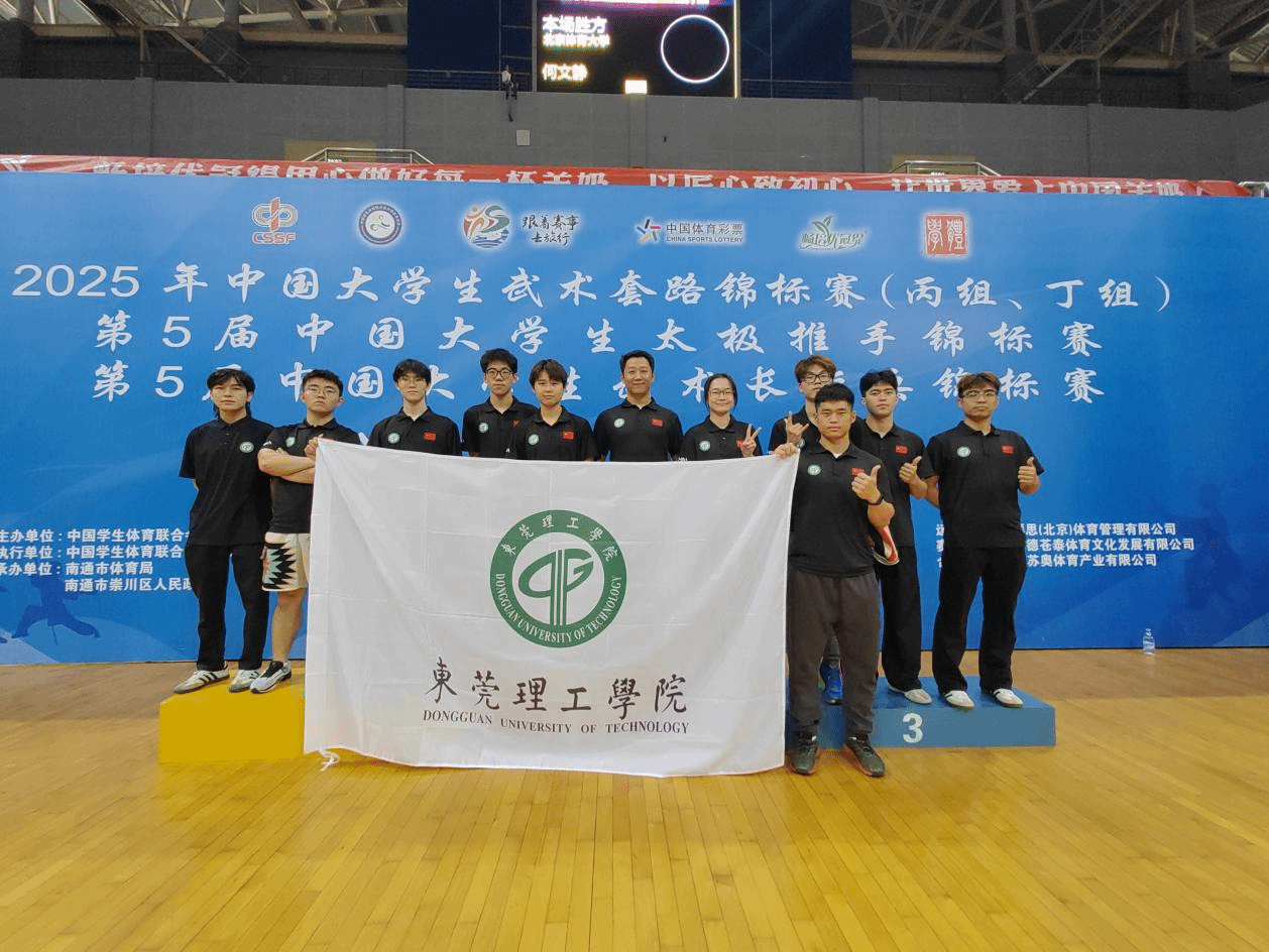 作为首次亮相中国大学生武术长短兵赛事的队伍,我校学子在赛前半年开启高强度备赛,日夜打磨技术与战术细节。赛场上,他们秉持 “特别能吃苦、特别能战斗、特别能忍耐、特别能团结、特别能奉献” 的体育精神,在五天的激烈角逐中顽强拼搏、奋勇争先,历经多轮淘汰赛考验,最终斩获 1 金 2 铜、4 个第五名的优异战绩,展现了莞工学子的过硬实力。