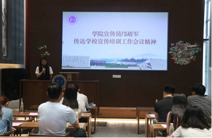 学院宣传员邝靖军传达学校宣传培训工作会议精神,指出在面对舆情上的需注意的细节以及如何处置等问题。