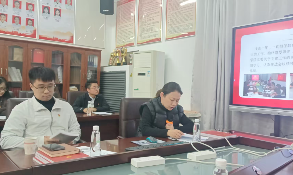 本次考核分现场述职和书面述职结合方式进行,教师第二党支部书记向静、学生第一党支部书记祁健邦进行现场述职,教师第一党支部书记仲雷、学生第二党支部书记陈嘉倩进行书面述职。