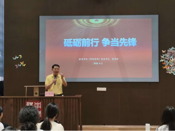 2026年4月2日,教育学院(师范学院)第40期入党积极分子培训班第一课开讲,学院党委书记张伟林为入党积极分子上“砥砺前行,争当先锋”主题党课。